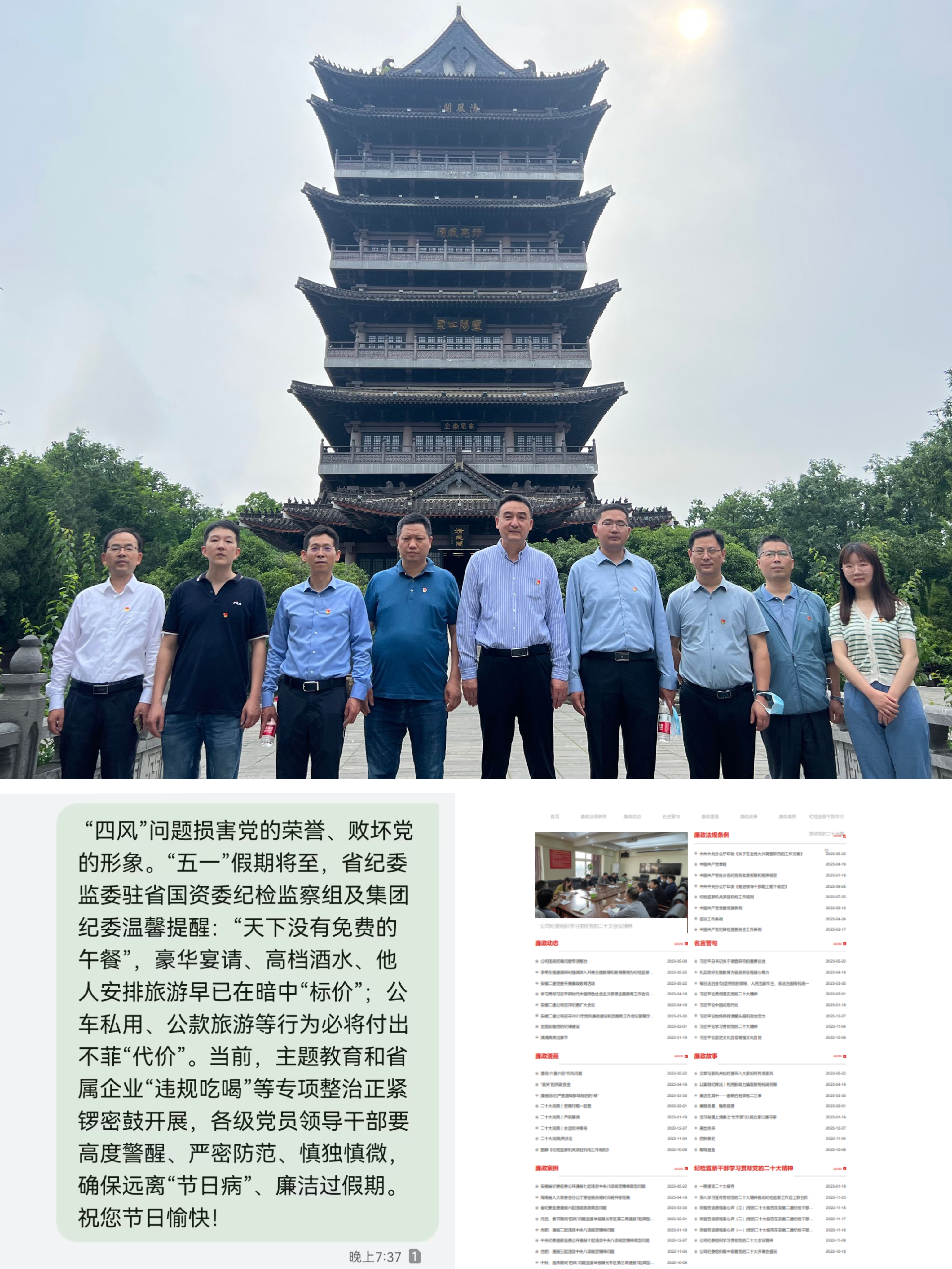 宣傳教育引導(dǎo),筑牢思想防線。一是開展節(jié)前廉政教育,以廉政教育專欄為平臺(tái),及時(shí)更新廉潔動(dòng)態(tài);通過發(fā)送廉潔短信,提醒黨員領(lǐng)導(dǎo)干部自覺遠(yuǎn)離“節(jié)日病”。二是要抓實(shí)警示教育,所屬各單位認(rèn)真學(xué)習(xí)近期安徽省紀(jì)委監(jiān)委、集團(tuán)紀(jì)委公開通報(bào)的違反中央八項(xiàng)規(guī)定精神典型問題,以身邊事教育身邊人,增強(qiáng)黨員干部知止、不想的自覺。第二公司和后勤綜合服務(wù)部分別組織觀看了《筑牢作風(fēng)堤壩》《八小時(shí)之外》,教育干部職工知敬畏、明底線、存戒懼。三是加強(qiáng)紀(jì)檢隊(duì)伍建設(shè),組織紀(jì)檢監(jiān)察干部走進(jìn)包公祠,開展廉潔教育,進(jìn)一步提升紀(jì)檢干部自身的黨性修養(yǎng),嚴(yán)防“燈下黑”。
