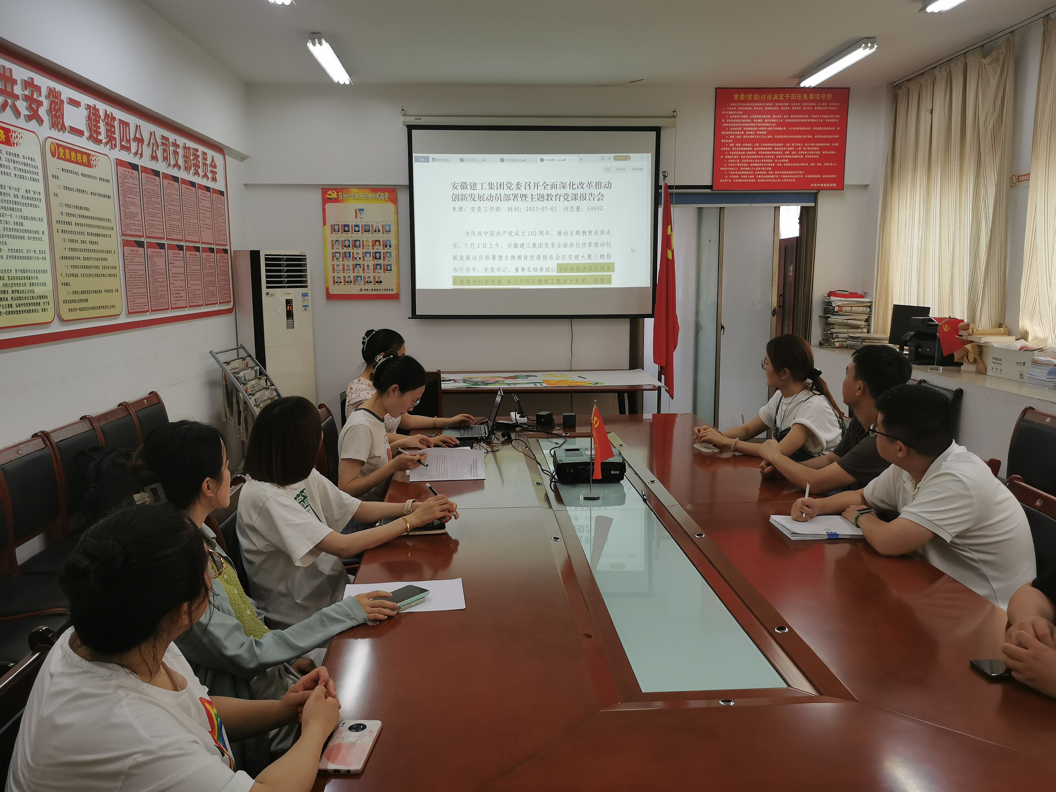 7月18日下午,建工二建第四公司團支部召開專題學習會,組織團員青年深入開展學習貫徹集團全面深化改革推動創新發展動員部署暨主題教育黨課報告會會議精神。