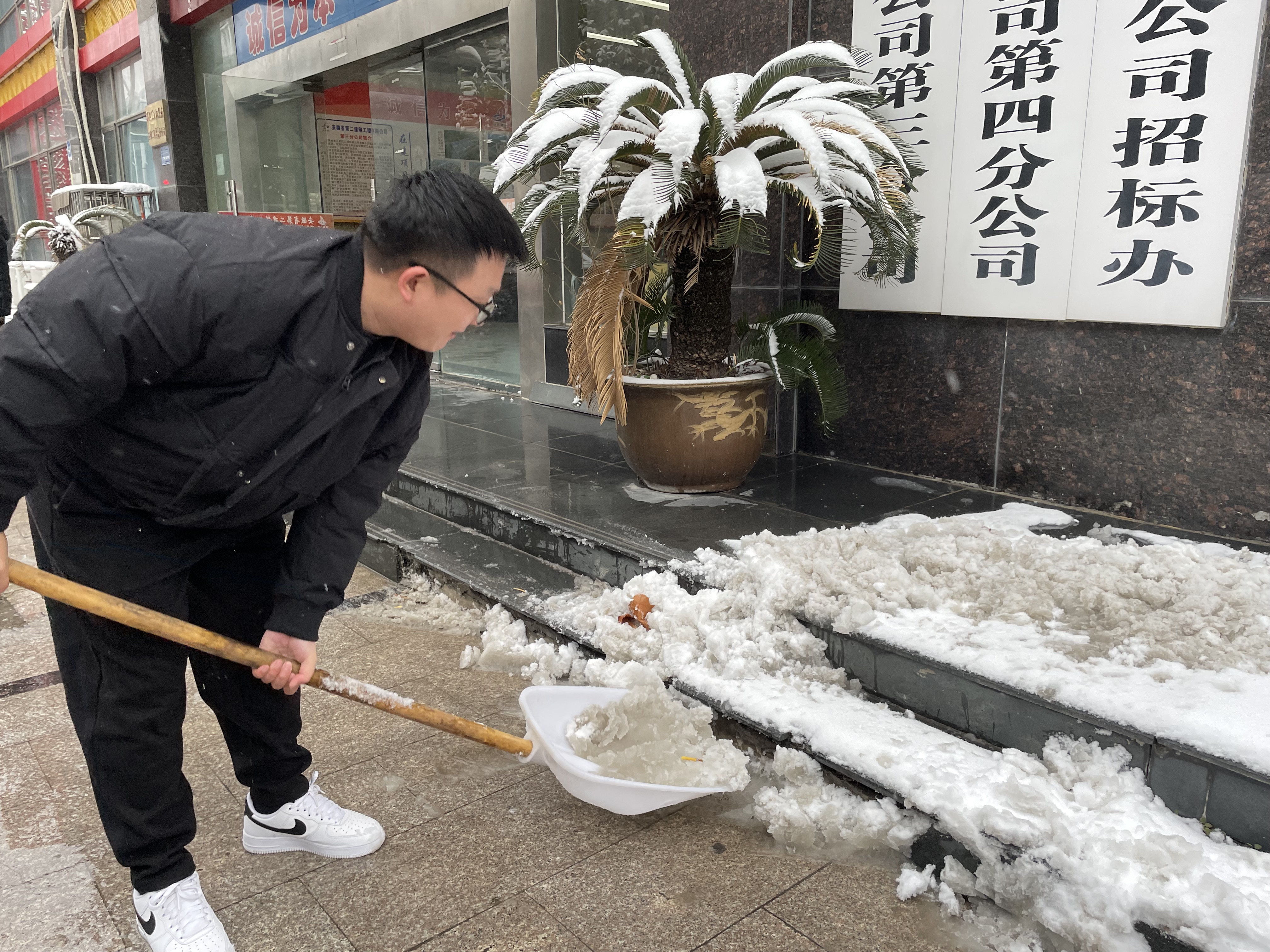 青年團員積極響應,不畏嚴寒,手拿鐵鍬、掃帚來到辦公樓前,對積雪進行大清掃。伴隨著凜冽的寒風奮戰一個多小時,終于將公司門口和內部道路積雪全部清理,開辟了一條洋溢著溫情的通暢安全路。
