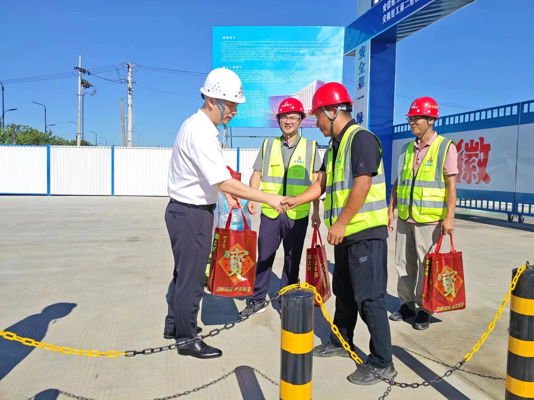 2024年7月30日,建工股份副總經(jīng)理,建工二建黨委書記、董事長(zhǎng)朱忠明赴安徽建工集團(tuán)智能綠色制造(長(zhǎng)豐)產(chǎn)業(yè)園項(xiàng)目開(kāi)展“工會(huì)送清涼 防暑保安康”慰問(wèn)活動(dòng)。