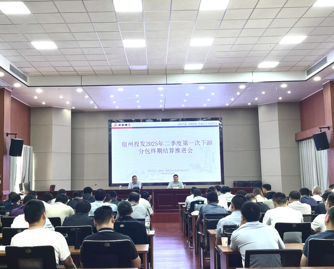 為進一步加快下游分包終期結算進度,強化項目成本管理效能,5月5日,宿州投發召開二季度第一次下游分包終期結算推進會。公司副總經理代鵬飛參加會議并講話,成本管理中心副主任張玉連主持會議。