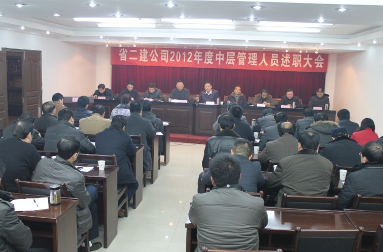 2012年12月29日上午,安徽二建在三樓會議室舉行了2012年度機關中層管理人員述職測評大會,機關29名中層管理人員進行了述職和民主測評。