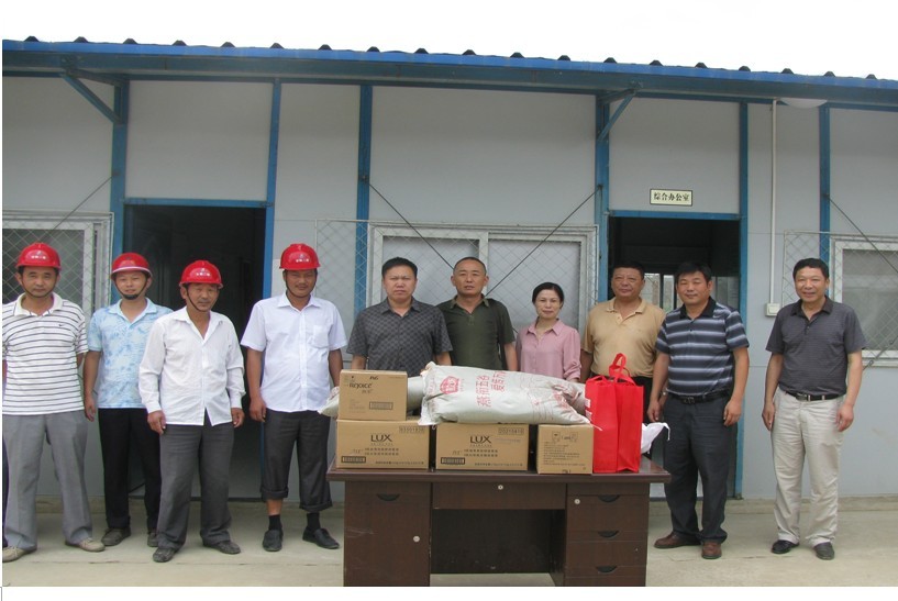 7月19日上午,集團公司總法律顧問申玉恩在集團保衛部信訪辦主任龔志酬、紀委專職委員潘琳和安徽二建公司黨委書記朱治淮、工會主席李林等陪同下,來到二公司承建的安徽省女子監獄遷建工程項目部“送清涼”。申總一行為工地送去了綠豆、白糖、香皂、毛巾、人丹、風油精等防暑降溫用品,并要求項目部在高溫期間要合理安排作息時間,抓好安全管理,做好項目部人員的防暑降溫工作。