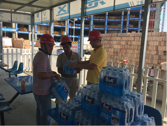 生物島一期項(xiàng)目部深入貫徹落實(shí)上級(jí)領(lǐng)導(dǎo)關(guān)于高溫作業(yè)有關(guān)要求以及防暑降溫用品及時(shí)發(fā)放的指示,由項(xiàng)目團(tuán)支部牽頭,項(xiàng)目各部門積極配合,為一線勞務(wù)作業(yè)人員分發(fā)礦泉水、綠茶、綠豆湯、十滴水等防暑降溫用品,并傳授預(yù)防中暑技巧,調(diào)整高溫作息時(shí)間,確保高溫作業(yè)環(huán)境下一線作業(yè)人員能有效防止意外發(fā)生,為項(xiàng)目的順利推進(jìn)保駕護(hù)航。