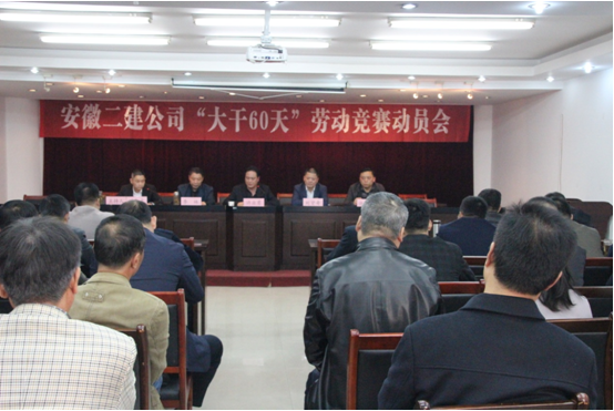 2017年已漸入歲末。為更好地全面完成年初公司既定各項(xiàng)經(jīng)濟(jì)技術(shù)目標(biāo)任務(wù),在項(xiàng)目上掀起大干熱潮,安徽二建公司于11月6日下午,在原辦公樓三樓會(huì)議室召開(kāi)“大干60天”勞動(dòng)競(jìng)賽動(dòng)員會(huì)。公司領(lǐng)導(dǎo)及機(jī)關(guān)職能部門(mén)負(fù)責(zé)人、所屬各基層單位黨政一把手、公司在建20個(gè)自營(yíng)項(xiàng)目負(fù)責(zé)人等60余人參加動(dòng)員會(huì)。