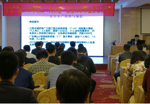 公司特別邀請了安徽省建設行業質量與安全協會秘書長兼任法人代表步向義,集團公司安全監察局副主任葛輝、主管王忠東,公司工程管理部副主任丁立群為學員進行系統的培訓。