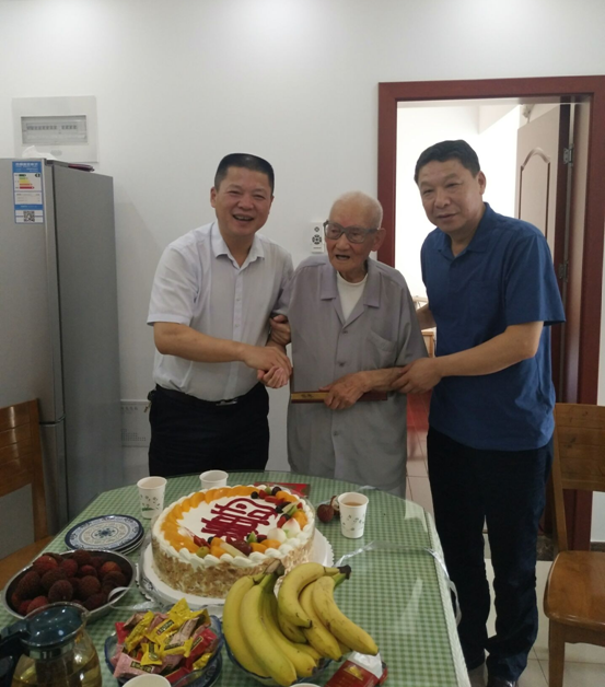 6月15日上午,公司黨委書記劉賢奇在工會主席李林、后勤綜合服務部支部書記、主管離休工作人員的陪同下,來到居住在高新區的離休老干部百歲老人李輝家中,送上生日壽桃蛋糕、慰問金和代表公司黨委對老人的生日祝福,祝愿老人壽比南山,福如東海。李輝,男,191971日出生,江蘇鹽城人,194541日參加新四軍抗日隊伍,19464月加入中國共產黨,出生入死63載,槍林彈雨,對黨忠誠,積極工作,勤勤懇懇,對企業發展建設作出應有貢獻。如今老人精神矍鑠,生活安逸,心情愉悅。劉賢奇一邊與老人真摯地交談,了解老人的身體健康狀況、長壽秘籍;一邊與老人分享中國改革開放翻天覆的變化,安徽二建66載的風雨歷程,目前企業已走向正常發展軌道,企業正處于轉型發展的關鍵時期,發展前景越來越好,希望老人事事順心,天天快樂,益壽延年。老人感謝劉書記和離休辦同志在自己百歲生日時給予的祝福,感謝公司黨委關心呵護,表示要堅定信念,永遠聽黨話,跟黨走,祝愿企業再創新的輝煌。