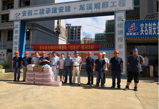 7月17日上午,驕陽似火,酷暑難耐。宿松縣住建局質檢站黨組書記產海中等人來到安建·龍溪觀邸建筑工地開展夏日送清涼慰問活動,為高溫酷暑下奮戰在一線的建筑工人帶去關愛與問候。