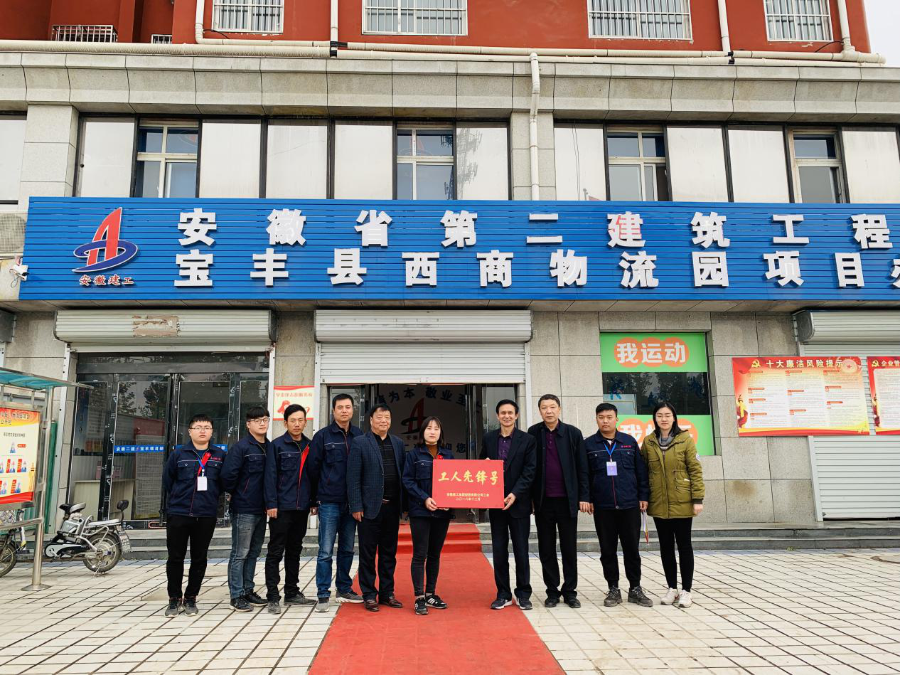 和煦的陽光溫暖愜意,細柔的春風馨香滿懷,4月10日,建工控股工會副主席吳曉伍、安徽二建公司副調研員李林、四分公司黨支部書記董建民等一行5人,來到安徽二建河南寶豐西商農產品(冷鏈)物流園項目現場驗收,并為項目“工人先鋒號”授牌。