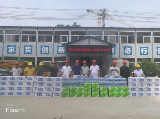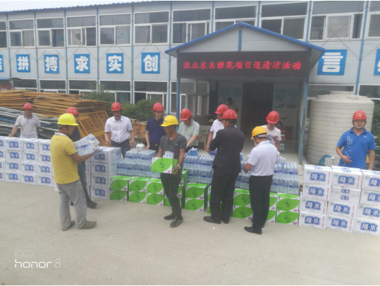 為做好公司夏季安全生產和防暑降溫工作,關心關愛一線職工, 6 月22 日,公司總經理葉和永,總經理助理蒯家江、安全總監曹建在分公司支部書記陳習武的陪同下來到淮北東岳雅苑項目部,為一線工人送去飲料、藥品等防暑降溫物資,并囑咐基層管理人員采取有效防暑降溫和安全生產保障措施, 避免高溫時段疲勞作 業, 防止中暑和其他各類生產安全事故的發生。