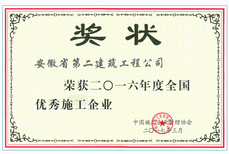 全國優秀施工企業(2016年度)