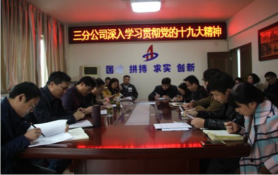 11月24日下午,安徽二建三分公司黨支部組織全體黨員專題學習貫徹黨的十九大精神,領會精神要義,提升工作水平,著力推進年度各項工作。