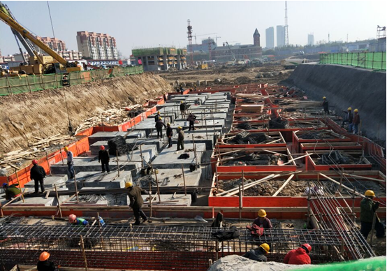 目前,各棟樓施工順利進(jìn)行,從土方開挖到地下室施工,處處呈現(xiàn)一片繁忙景象,施工高潮已全面形成。