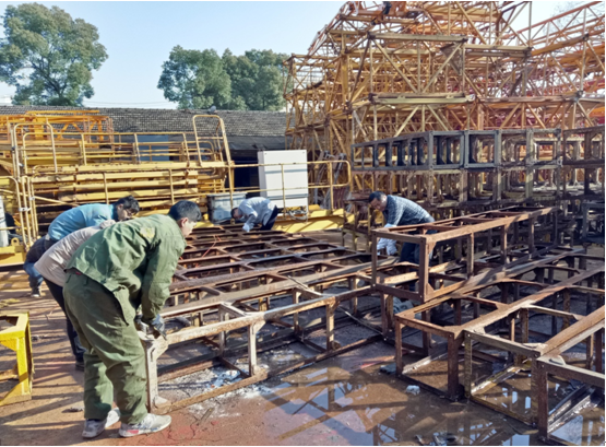機械分公司作為公司建筑施工的先鋒隊,機械設備是根本。千里之堤潰于蟻穴,為了保證機械設備的安全運轉和使用壽命。3月15日,機械分公司各部門員工開展了為期三天的大型機械設備除銹和噴漆勞動。