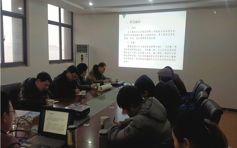 會議主要通過ppt形式就策劃編審、施組、方案編審、項目技術質量考核、新開工項目告知等內容進行解讀,集中學習了公司及分公司項目管理、質量控制、重難點攻關、冬季施工等相關文件。