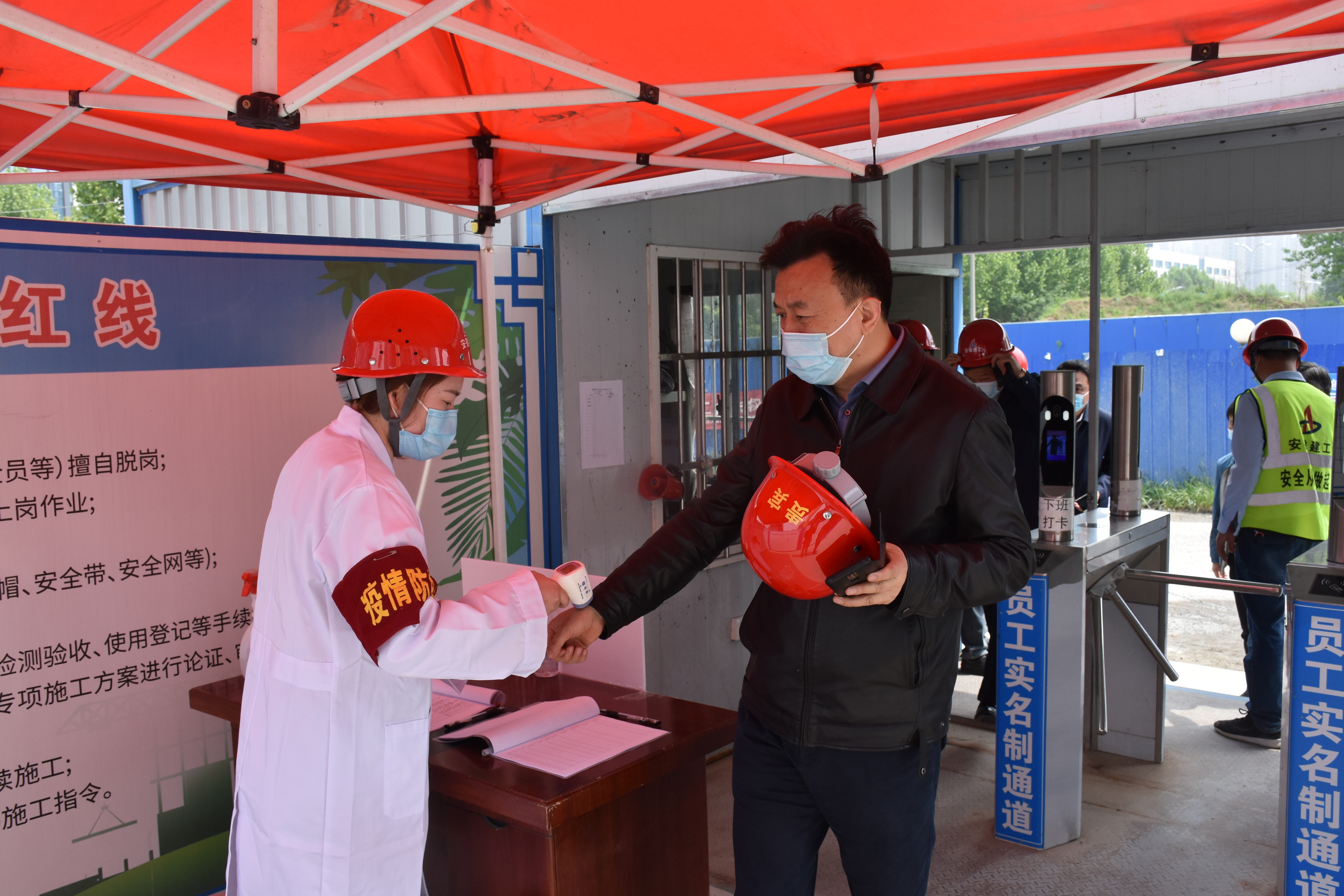 王汪苗現(xiàn)場(chǎng)督導(dǎo)檢查項(xiàng)目部的施工現(xiàn)場(chǎng)、辦公區(qū)域、食堂、生活區(qū)情況,詳細(xì)了解項(xiàng)目部疫情防控工作部署、落實(shí)集團(tuán)及屬地工作要求、常態(tài)化疫情防控措施及防疫物資儲(chǔ)備等有關(guān)重點(diǎn)工作。在聽(tīng)取項(xiàng)目部關(guān)于當(dāng)前生產(chǎn)及疫情防控工作的匯報(bào)后,王汪苗對(duì)項(xiàng)目工作給予肯定,并指出,文一春風(fēng)里項(xiàng)目作為二建首個(gè)超高層工程,在抓好履約工期及安全生產(chǎn)的同時(shí)必須嚴(yán)把防疫關(guān),確保廣大職工生命健康安全。